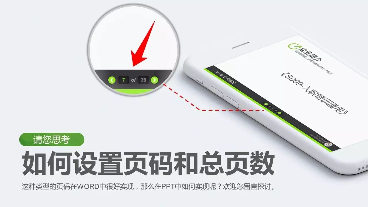 留一个思考题给大家。如何设置如图效果的页码和总页数呢?这种类型的页码在WORD中很好实现,那么在PPT中如何实现呢?欢迎您留言探讨。