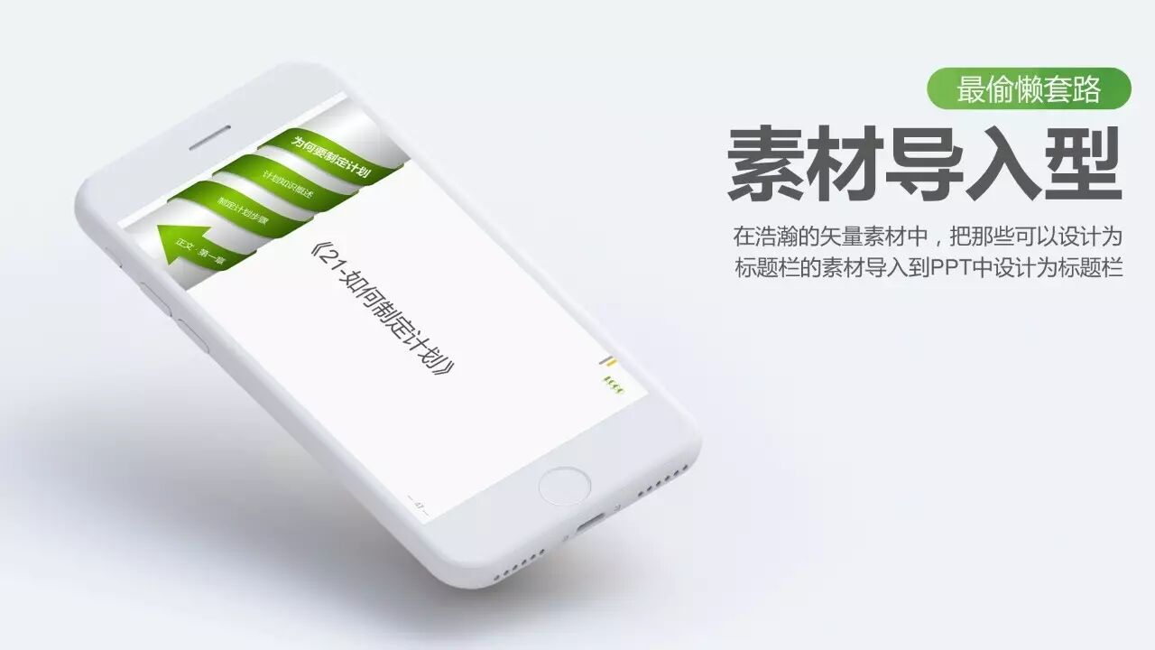 最偷懒套路:素材导入型。在浩瀚的矢量素材中,把那些可以设计为标题栏的素材导入到PPT中设计为标题栏。页面可以根据需要辅以页码设计,如案例中的版面右下侧。